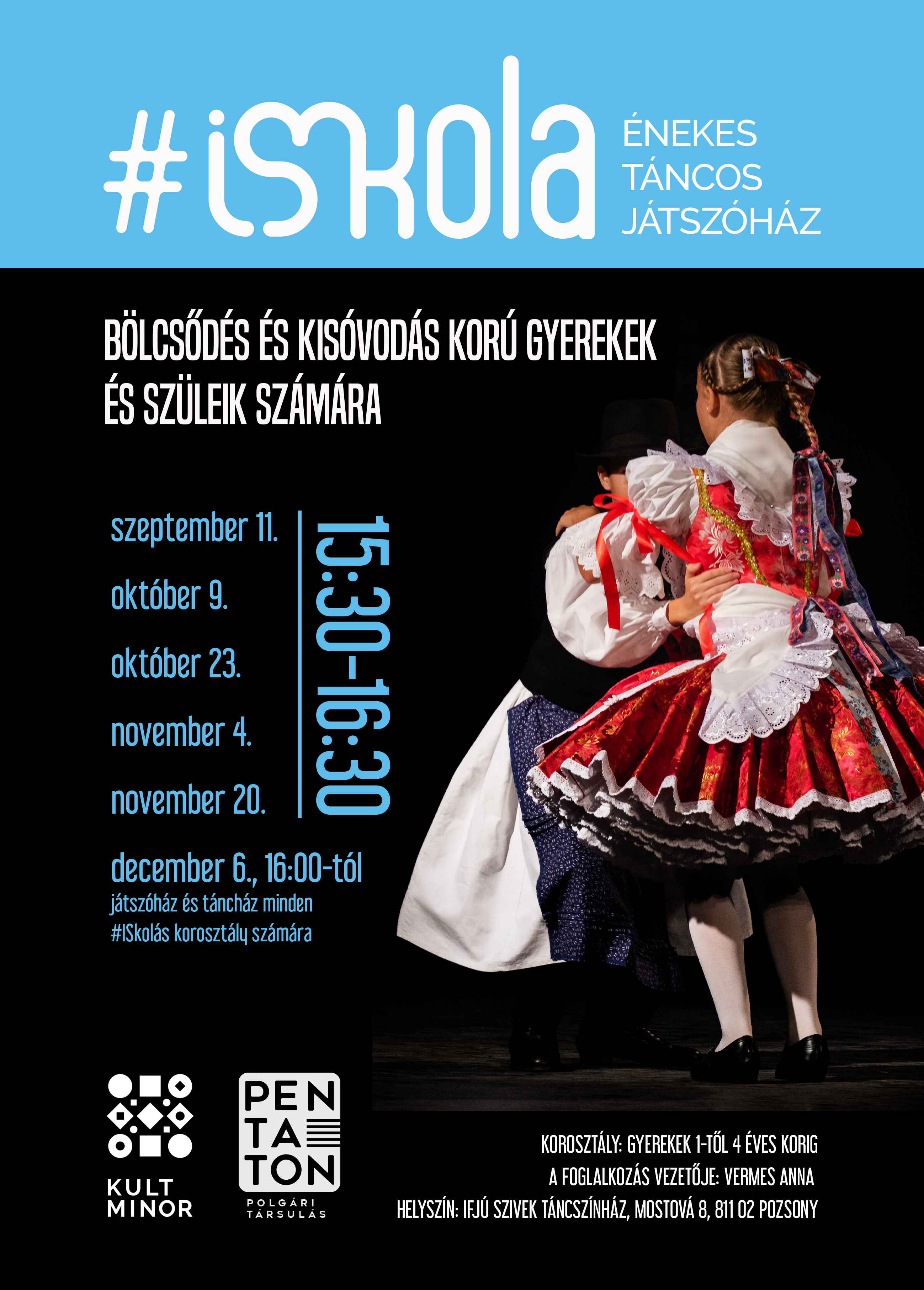A Pentaton Polgári Társulás #ISkola projektjének keretében énekes-táncos játszóházakat szervez bölcsődés és kisóvodás korú gyerekek és szüleik számára az ősz folyamán az Ifjú Szivek Táncszínházban.