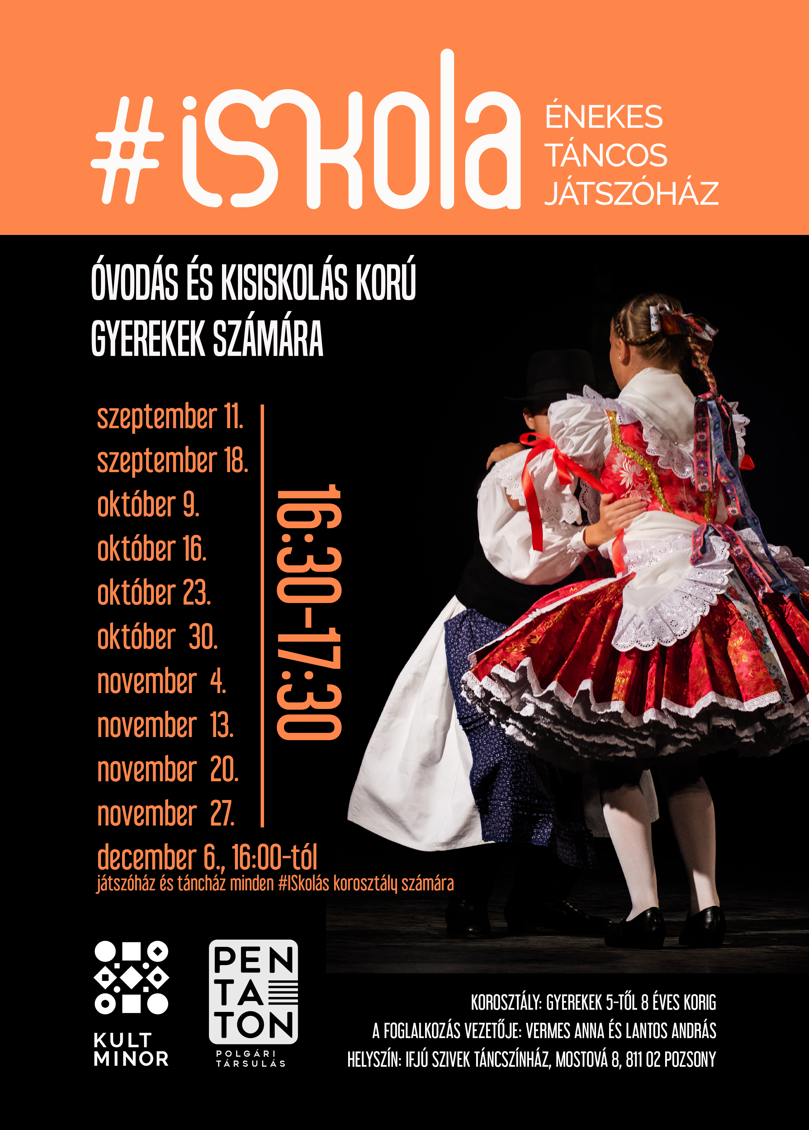 A Pentaton Polgári Társulás #ISkola projektjének keretében énekes-táncos játszóházakat szervez óvodás és kisiskolás korú gyerekek számára az ősz folyamán az Ifjú Szivek Táncszínházban.